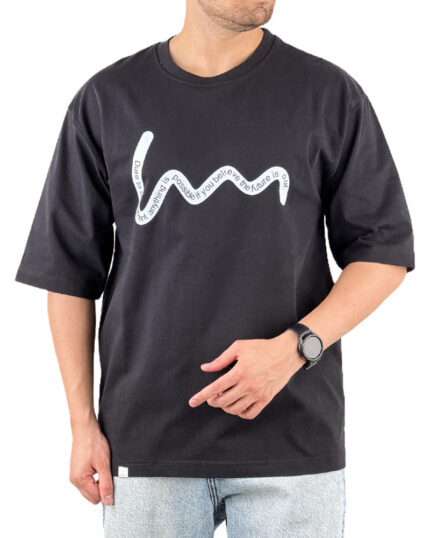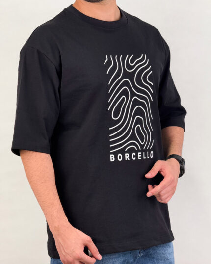تیشرت مردانه زنانه اسپرت چاپ برجسته اثر انگشت رنگ مشکی کد 441120