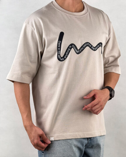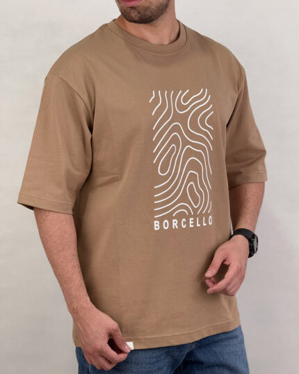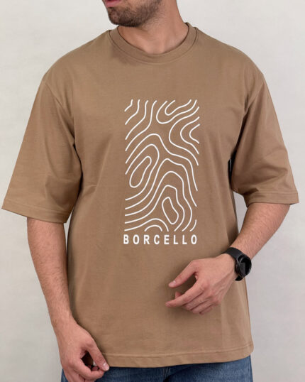 تیشرت مردانه زنانه اسپرت چاپ برجسته اثر انگشت رنگ کرم کد 441122