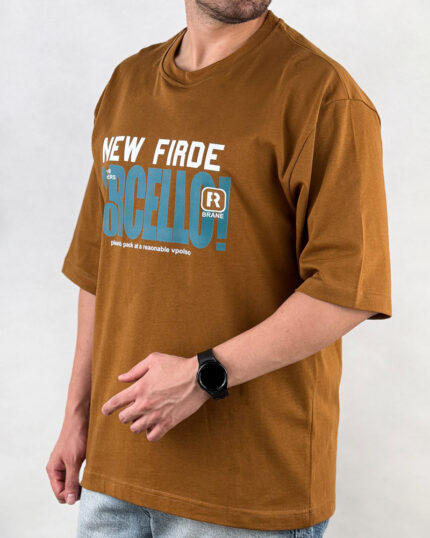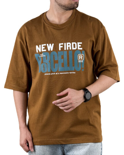 تیشرت مردانه يقه گرد نيوفرايد رنگ شتری کد 40304