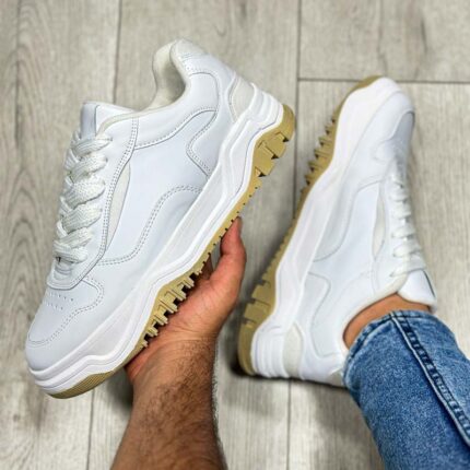 کفش برشکا مردانه سفید زیره کرم bershka کد 1770