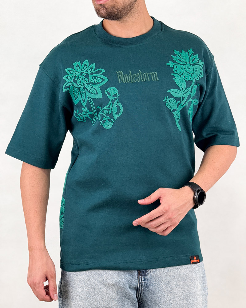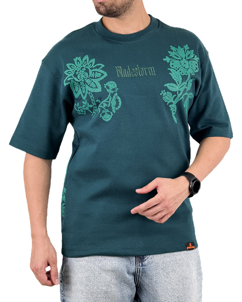 تیشرت مردانه اسپرت مدل لش استورم گلدوزی چاپ طرح گل رنگ سبز کد 999123