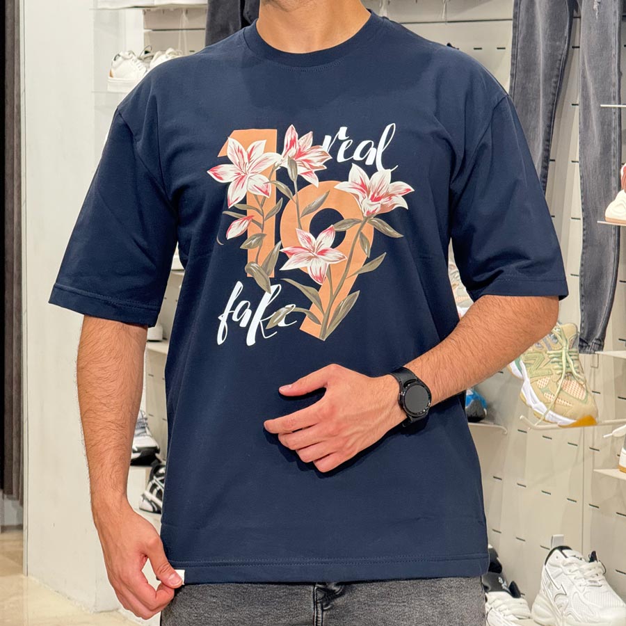 تیشرت مردانه مدل فلاور 19 رنگ سرمه ای کد 77710