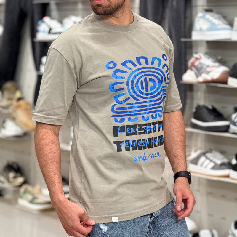 تیشرت مردانه مدل مایا دو رنگ طوسی کد 392592 تولید ایران قواره استاندارد مدل با قد 173 و وزن 82 سایز لارج را پوشیده است
