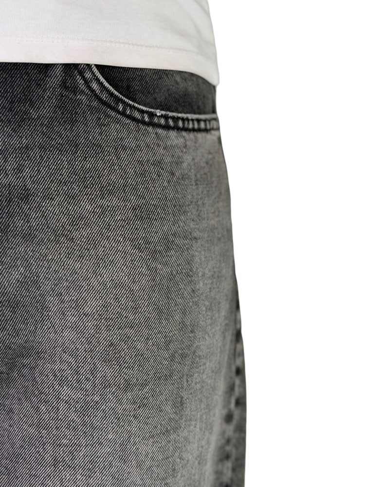 شلوار جین مردانه نیم بگ واید لگ رنگ ذغالی کد 00356