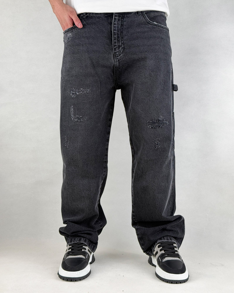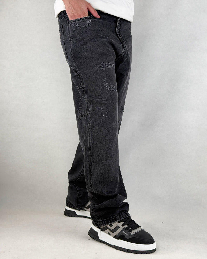 شلوار جین مردانه نیم بگ رنگ زغالی ronak convers کد 00055