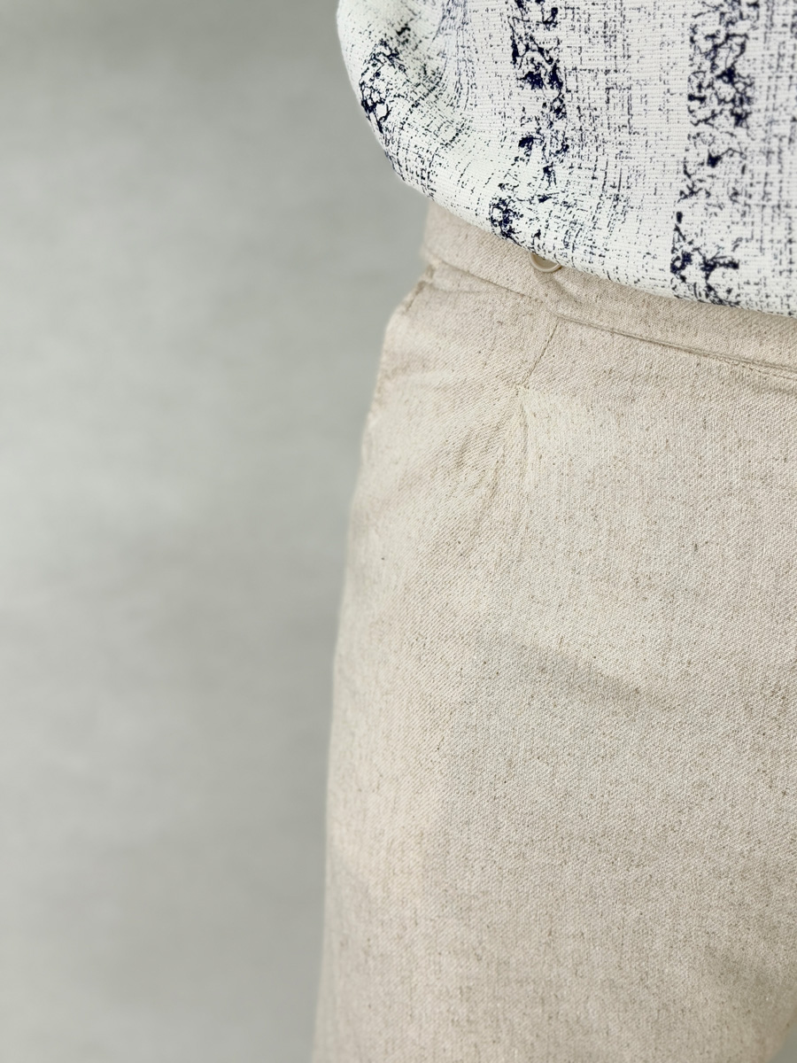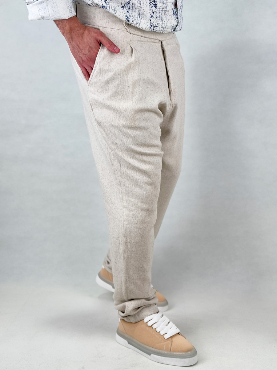 شلوار لینن کمر ایتالیا پیله دار مردانه رنگ نچرال کد 38442