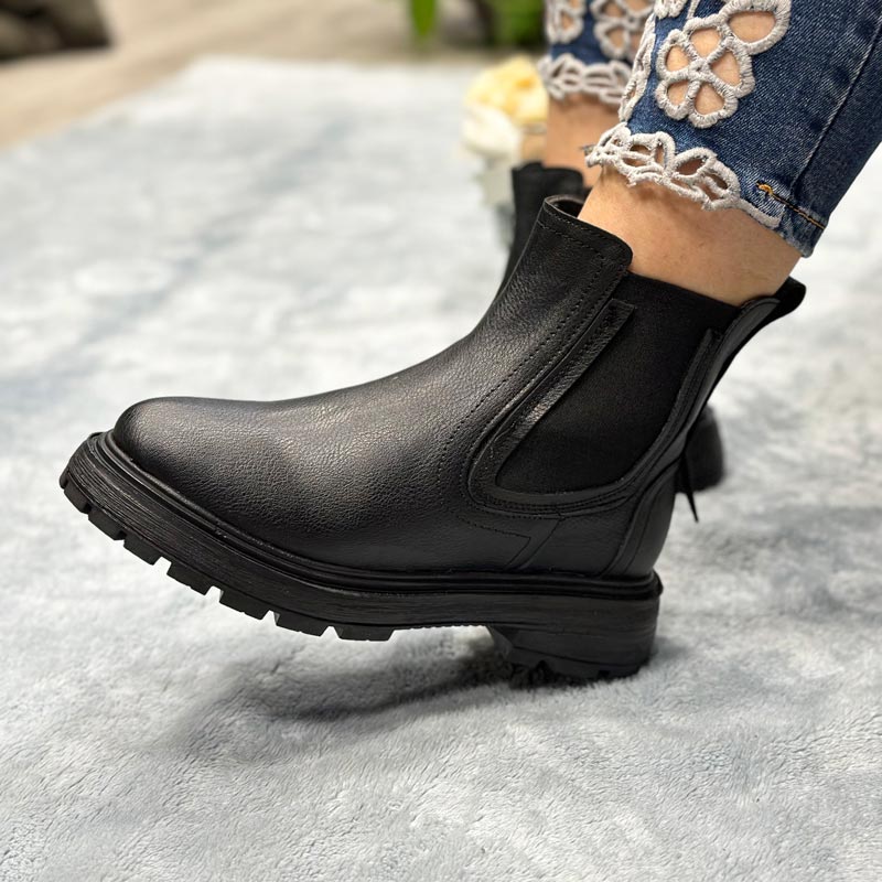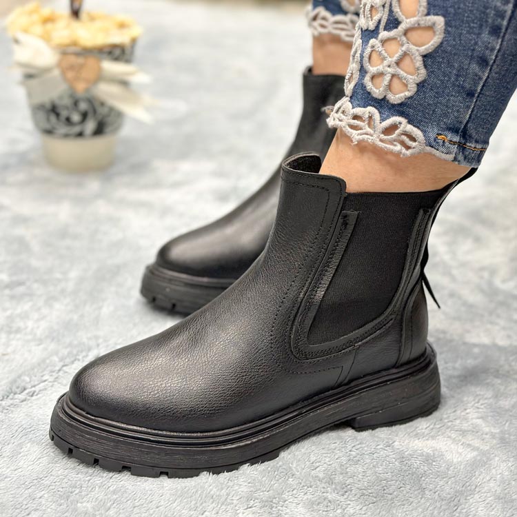 نیم بوت کلاسیک زنانه ضد آب طرح چرم بغل کش مشکی کد 9090