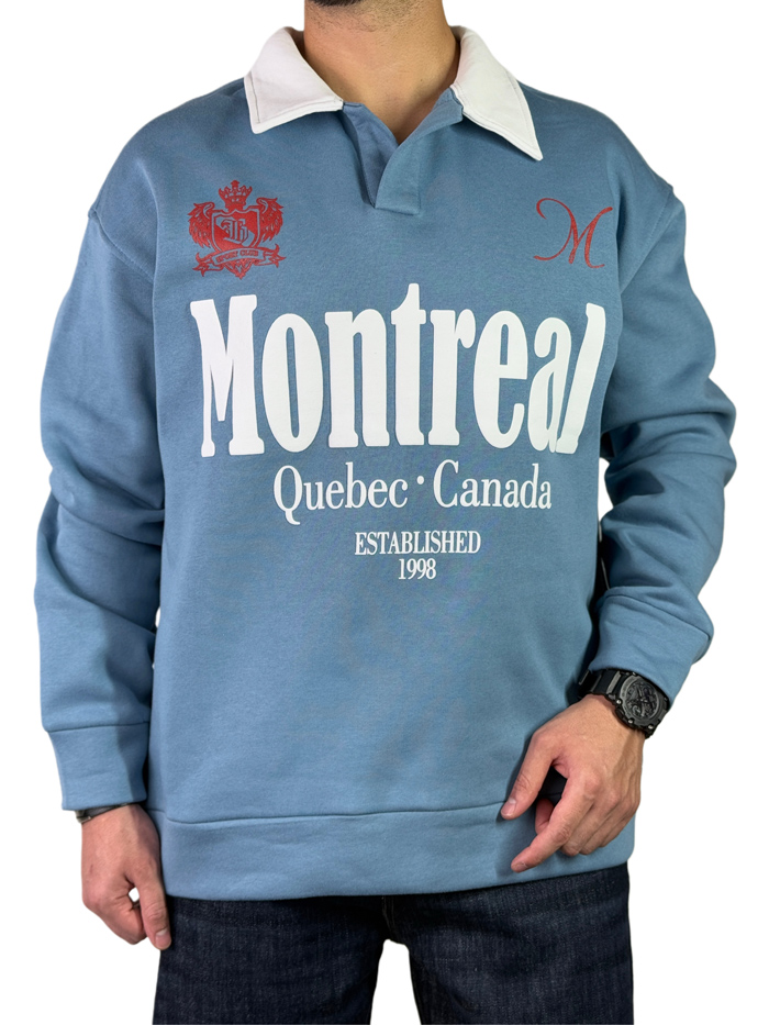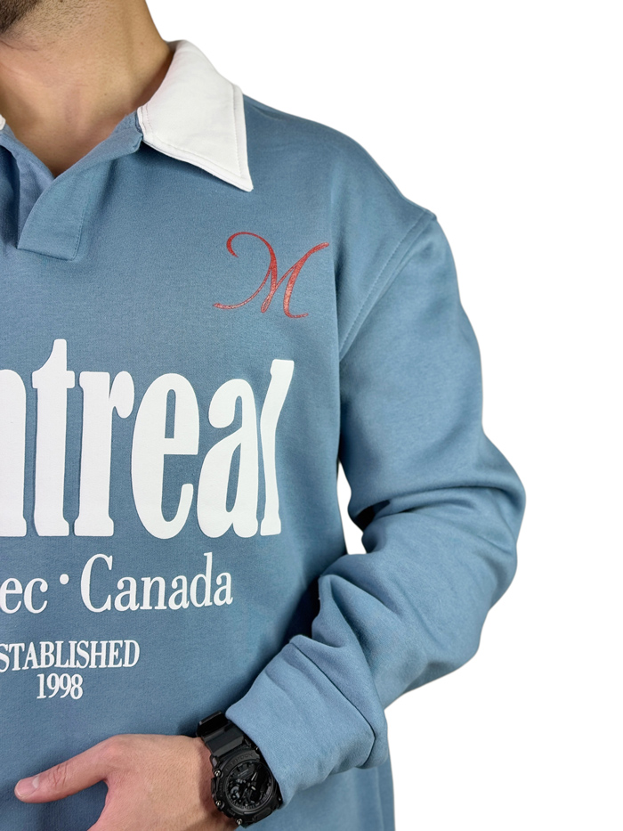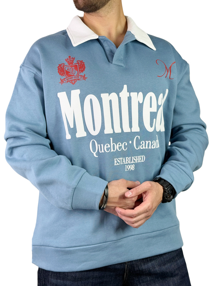 پلیور دورس مردانه سه نخ مدل یقه کوبا مونترال رنگ آبی کد 00339