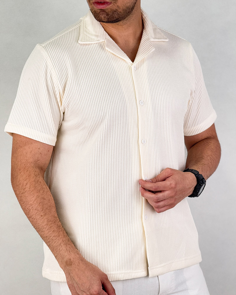 پیراهن مردانه لینن راه راهریلی انگلیسی رنگ کرم کد 68201