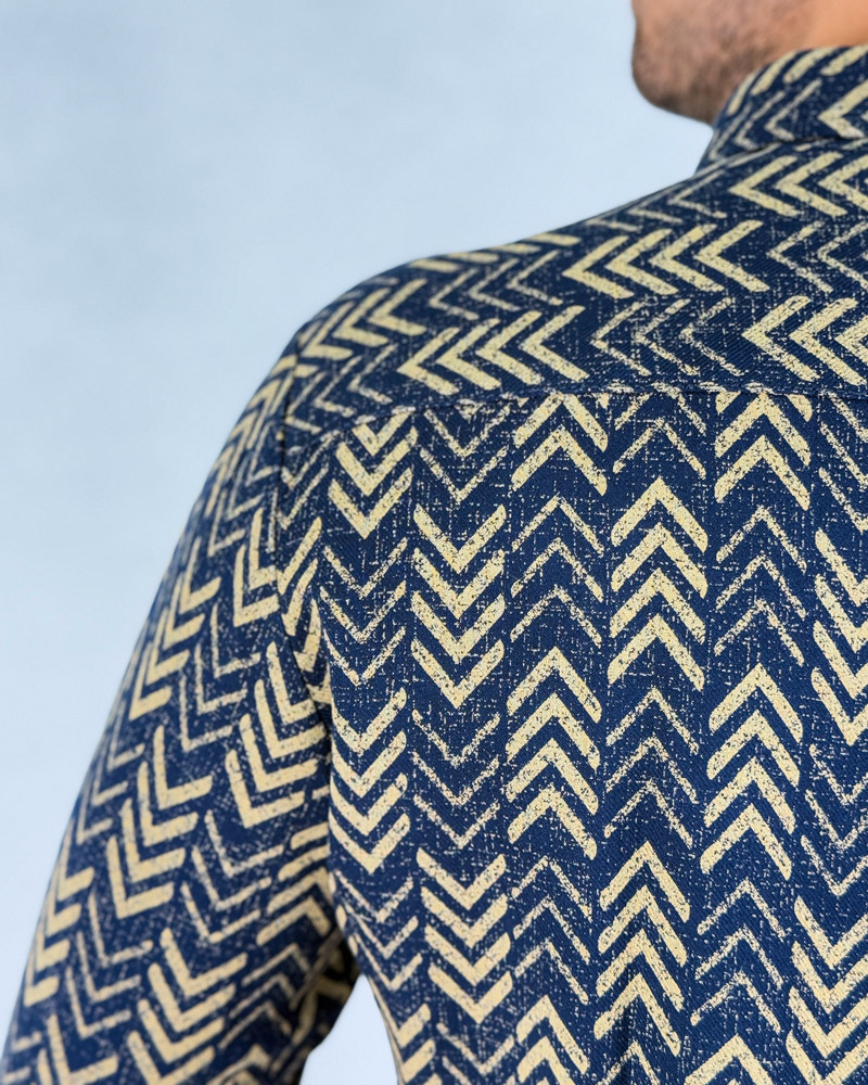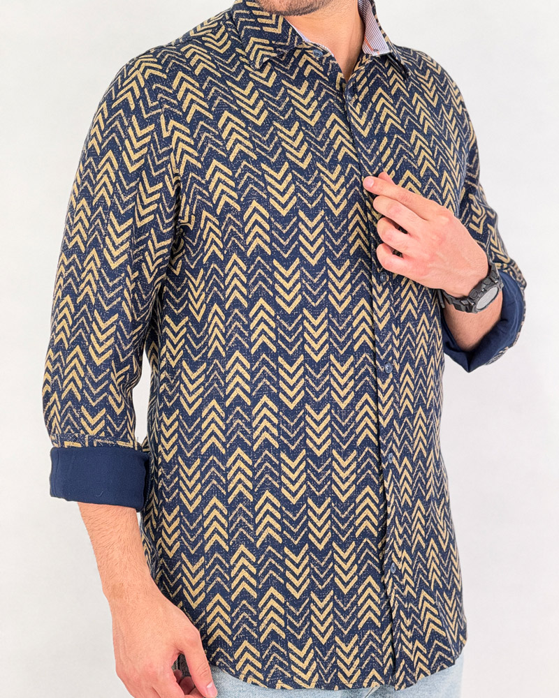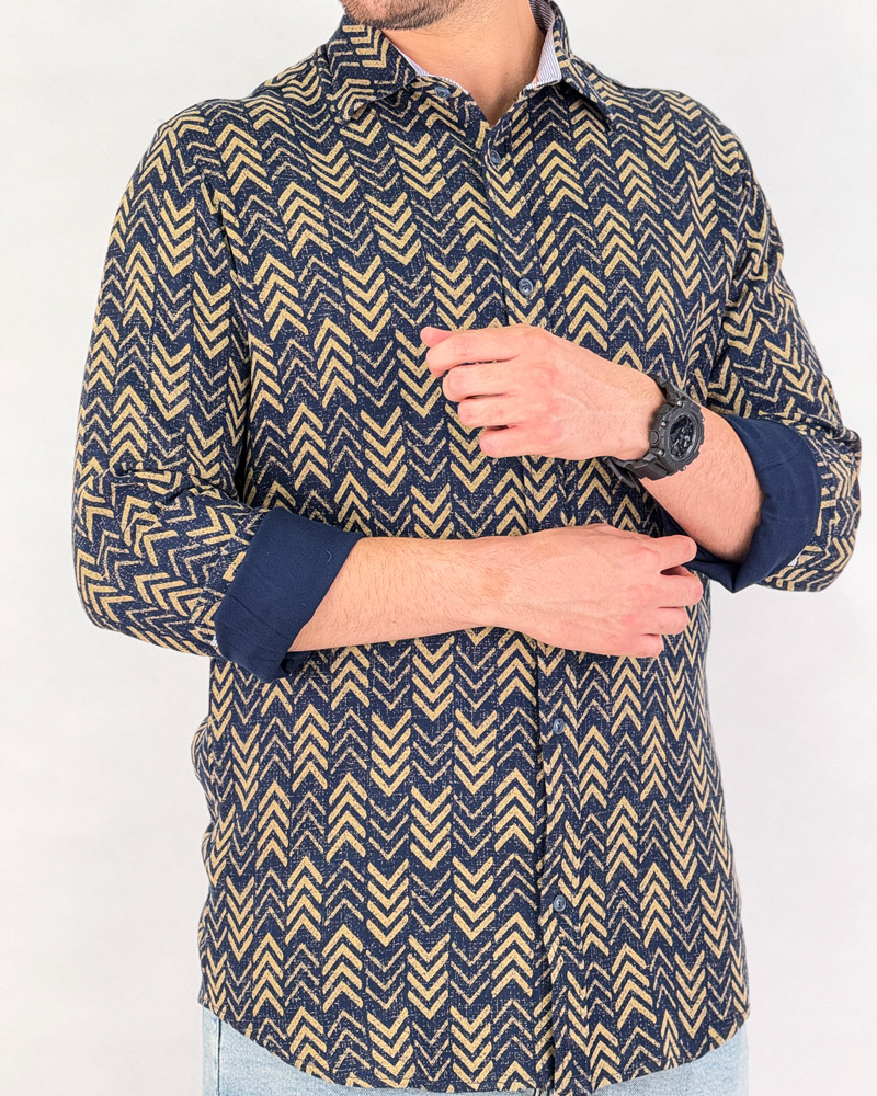 خانه پیراهن مردانه پیراهن مردانه چاپی جناقی رنگ سرمه ای کد 66101