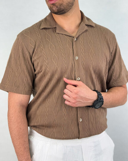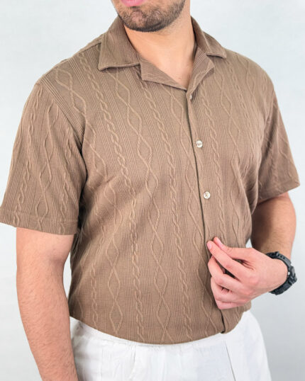 پیراهن مردانه طنابی لوزی انگلیسی رنگ قهوه ای کد 67403
