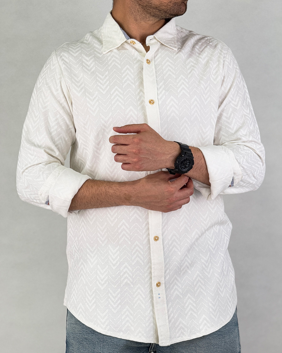 خانه پیراهن مردانه پیراهن مردانه چاپی جناقی رنگ سفید کد 66102