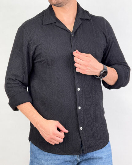 پیراهن مردانه چاپی جناقی رنگ مشکی کد 66103