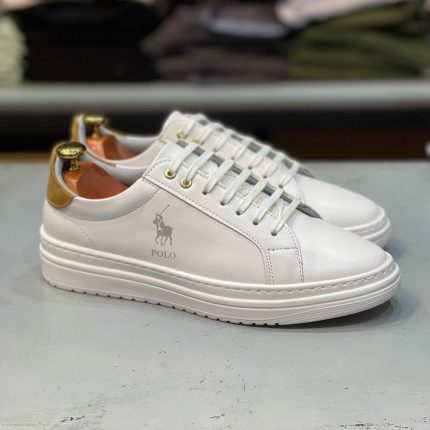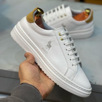 کفش ونس مردانه مدل پولو سفید پشت کرم دور دوخت و رویه چرم