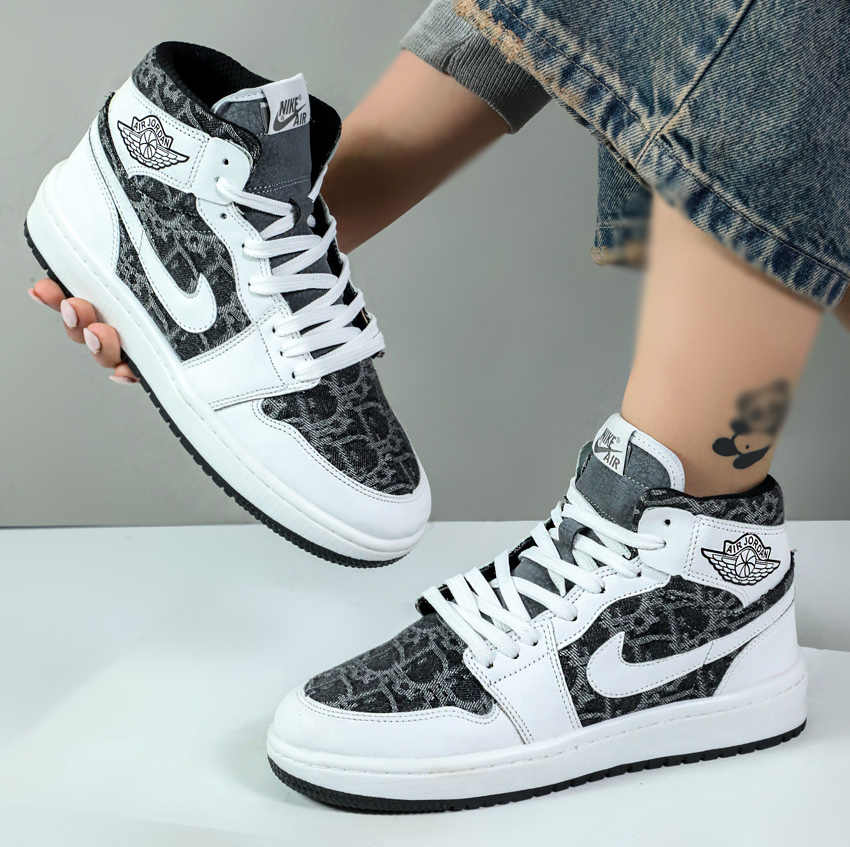 کتونی ساقدار زنانه مدل جردن ایر وان jordan air رنگ سفید مشکی طوسی کد 054462