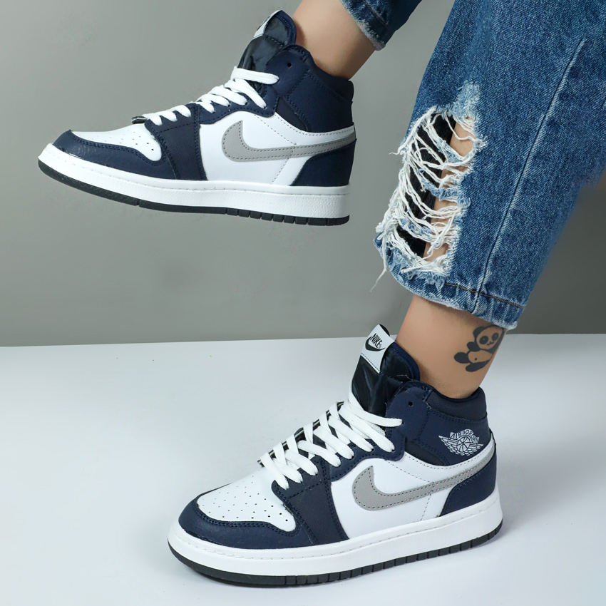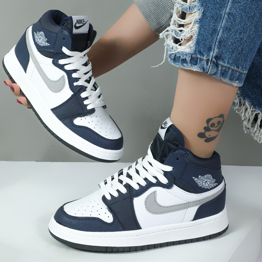 خانه زنانه بوت و نیم بوت زنانه کتونی ساقدار زنانه مردانه ست مدل جردن ایر وان jordan air رنگ سرمه ای کد 54462