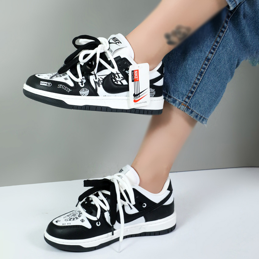 کتونی نایک زنانه مدل دو بند stussy سفید مشکی کد 001684