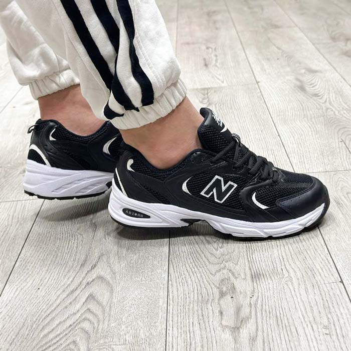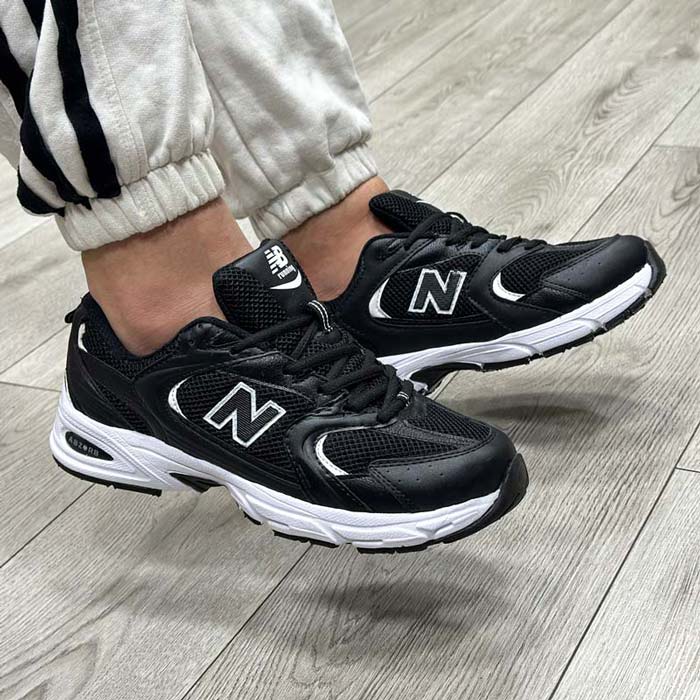 خانه مردانه کتونی اسپرت مردانه کتونی نیوبالانس 530 مشکی سفید مردانه زنانه رویه بافت- 530 new balance کد 6768