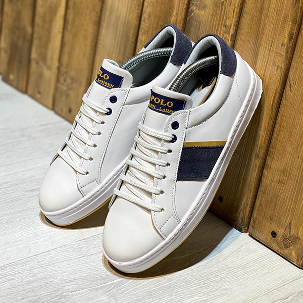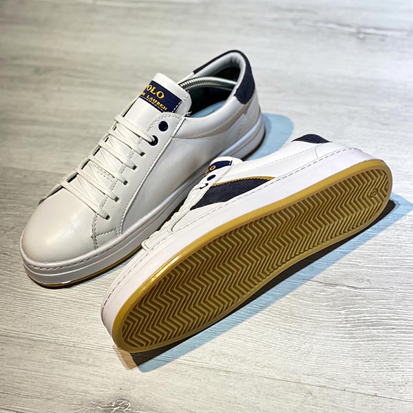 کفش ونس مردانه مدل پولو سفید پشت کرم دور دوخت و رویه چرم