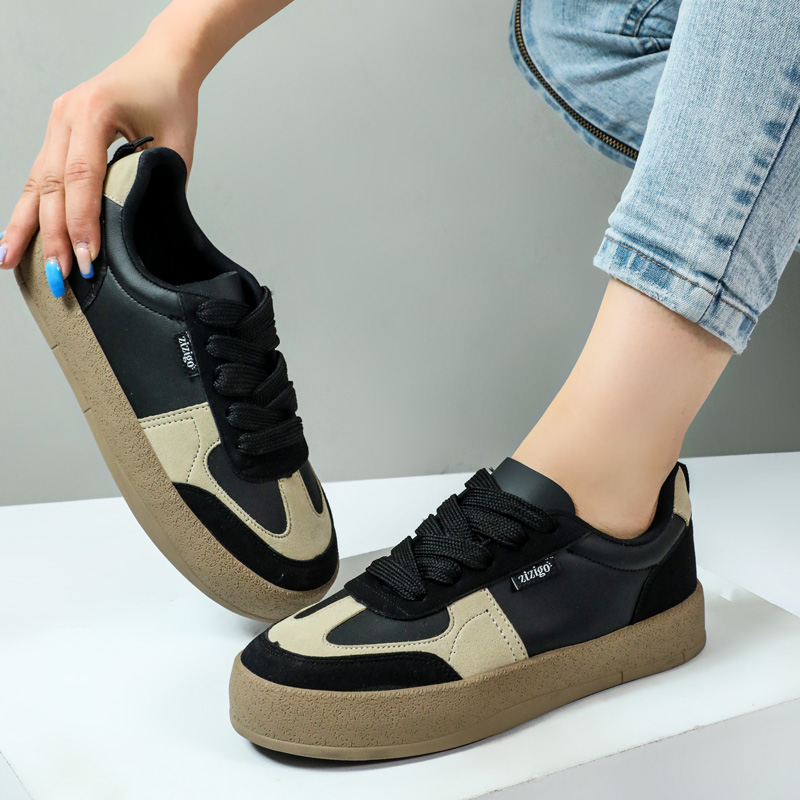 خانه کفش کتونی راحتی و روزمره زنانه ( ونس ) کفش کتونی اسپرت زنانه مدل زیزیگو رنگ مشکی کرم کد 88711