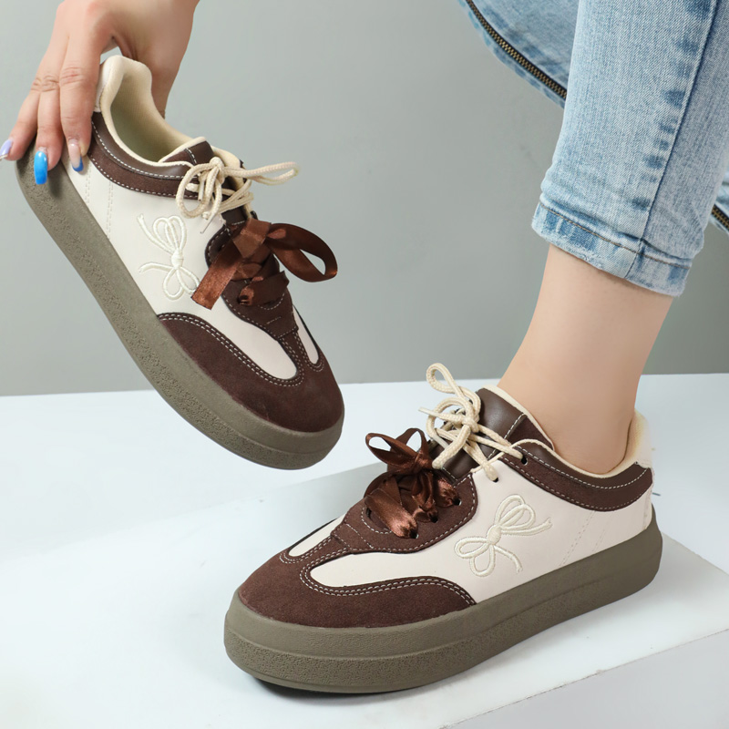 خانه زنانه کفش کتونی اسپرت زنانه مدل پاپیون رنگ کرم زرشکی کد 88715