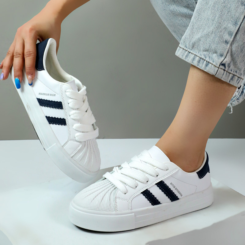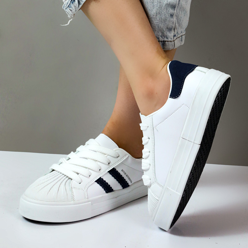 کفش کتونی زنانه اسپرت مدل آدیداس دو خط رنگ سفید سرمه ای کد 87403