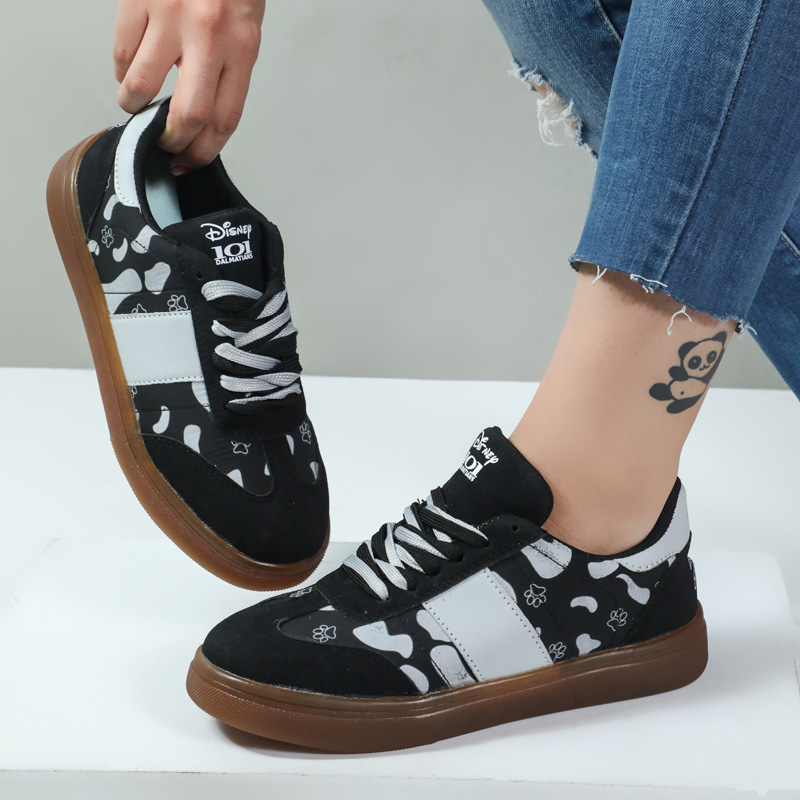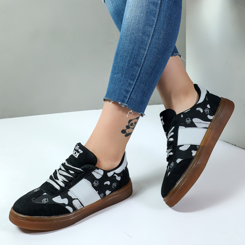کفش کتونی زنانه رنگ مشکی سفید مدل پاپی کد 81750